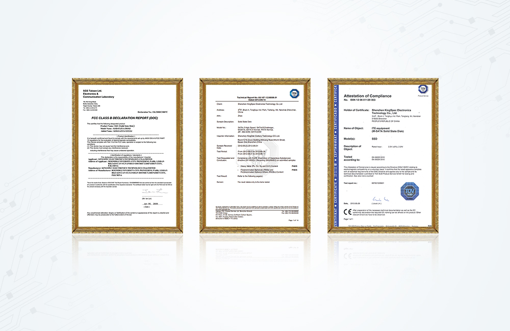 拓寬產(chǎn)品線PCIe、PATA、DOM、金勝維SATA系列產(chǎn)品通過CE、FCC、RoHS等權(quán)威認(rèn)證